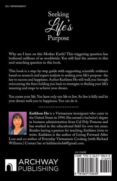 Why am I here on this Mother Earth? This triggering question has bothered millions of us worldwide. You will find the answer to this soul-searching question in this book. This book is a step-by-step guide with supporting scientific evidence based on research and expert analysis to seeking your life's purpose- the key to success and happiness. Author Kathleen Ho will walk you from overcoming fears holding you back to strategies to finding your life's meaning to steps to achieve your dream. You create your life. You have only one life to live. So live it fully and let your dream walk you to happiness. You can do it.