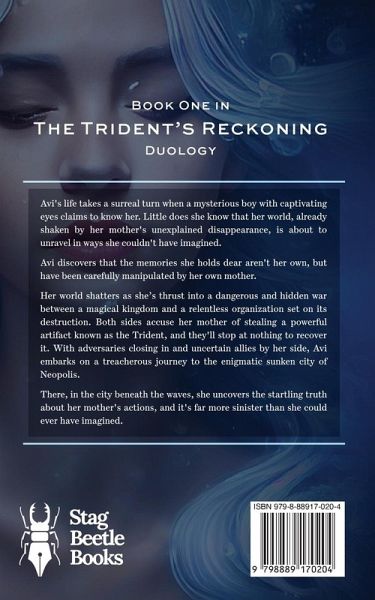 THERE ARE MORE THAN SECRETS WAITING IN THE WATER. Avi's life takes a surreal turn when a mysterious boy with captivating eyes claims to know her. Little does she know that her world, already shaken by her mother's unexplained disappearance, is about to unravel in ways she couldn't have imagined. Avi discovers that the memories she holds dear aren't her own, but have been carefully manipulated by her own mother. Her world shatters as she's thrust into a dangerous and hidden war between a magical kingdom and a relentless organization set on its destruction. Both sides accuse her mother of stealing a powerful artifact known as the Trident, and they'll stop at nothing to recover it. With adversaries closing in and uncertain allies by her side, Avi embarks on a treacherous journey to the enigmatic sunken city of Neopolis. There, in the city beneath the waves, she uncovers the startling truth about her mother's actions, and it's far more sinister than she could ever have imagined.