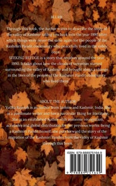 Through this book, the Author wants to describe the story of the valley of Kashmir taking you back into the year 1990 after which things were never the same again for the people of the Kashmiri Pandit community who peacefully Iived in the valley once. SEEKING REFUGE is a story that revolves around the year 1990. It talks about how the clouds of terrorism started surrounding the valley of Kashmir and brought about change in the lives of the people of the Kashmiri Pandit community who once lived there.