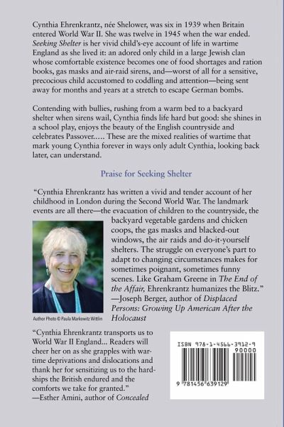 Cynthia Ehrenkrantz was six in 1939 when Britain entered World War II. She was twelve in 1945 when the war ended. Seeking Shelter is her vivid child's-eye account of life in wartime England as she lived it: an adored only child in a large Jewish clan whose comfortable existence becomes one of food shortages, gas masks and air-raid sirens, and - worst of all - being sent away for months and years at a stretch to escape German bombs. Contending with bullies, rushing from a warm bed to a backyard shelter when sirens wail. Life is hard but also good: shining in a school play, collecting foil for the war effort, celebrating Passover... These are the mixed realities of wartime that mark young Cynthia forever in ways only adult Cynthia can understand.