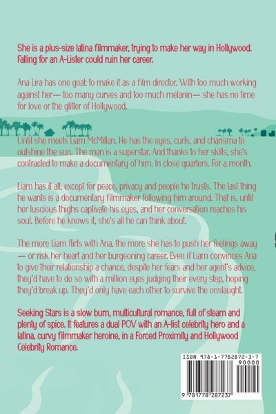 She is a plus-size latina filmmaker, trying to make her way in Hollywood. Falling for an A-Lister could ruin her career. Ana Lira has one goal: to make it as a film director. With too much working against her- too many curves and too much melanin- she has no time for love or the glitter of Hollywood. Until she meets Liam McMillan. He has the eyes, curls, and charisma to outshine the sun. The man is a superstar. And thanks to her skills, she's contracted to make a documentary of him. In close quarters. For a month. Liam has it all, except for peace, privacy and people he trusts. The last thing he wants is a documentary filmmaker following him around. That is, until her luscious thighs captivate his eyes, and her conversation reaches his soul. Before he knows it, she's all he can think about. The more Liam flirts with Ana, the more she has to push her feelings away- or risk her heart and her burgeoning career. Even if Liam convinces Ana to give their relationship a chance, despite her fears and her agent's advice, they'd have to do so with a million eyes judging their every step, hoping they'd break up. They'd only have each other to survive the onslaught. Seeking Stars is a slow burn, multicultural romance, full of steam and plenty of spice. It features a dual POV with an A-list celebrity hero and a latina, curvy filmmaker heroine, in a Forced Proximity and Hollywood Celebrity Romance.