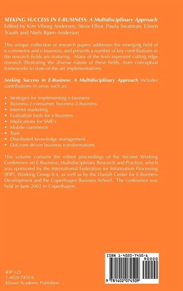 If e-Business is Different, then so is Research in e-Business.- The Internet and an Opportunity to Re-invent the Banking System.- Failing with success.- Models of Trust in Business-to-Consumer Electronic Commerce.- Conceptual frames of reference and their influence on E-Commerce System Development.- An Evaluation of Intelligent Agent based Innovation in the Wholesale Financial Services Industry.- Enhancing Mobile Commerce: Instant Music Purchasing Over the Air.- E-Business and Dot.com Driven Transformation - a Comparison of Australian And Indian Experiences in the Telecom Sector.- A Strategic Comprehensive Framework for Evaluating is Investments.- Supporting CLEAR: A Strategy for Small and Medium Size Enterprise Adoption of e-Business Practices in Atlantic Canada.- Multidisciplinary E-Forensics Methodology Development to Assist in the Investigation of e-Crime.- The Potentialities of Focus Groups in e-Business Research: Theory Validation.- Use of the Web for Destination Marketing by Regional Tourism Organisations in the Asia-Pacific Region.- Internet Marketing Communications: Interactivity and Integration.- E-Business and the Formation of Strategies.- Managing a portfolio of supplier relations in internet-driven electronic market places.- Adoption of E-Commerce in SMEs: Lessons from Stage Models.- E-Government Business Strategies and Services to Citizens.- The Implications of E-Commerce for Software Project Risk: A preliminary investigation.- Framework for Participants' Recognition of Key Success Factors in Electronic Marketplaces.- Integrating E-commerce into the Retail Supply Chain.- Integration of an Internet-Driven Supply Chain for a Medium-Size E-commerce Company.- Consumer Choice, Information Product Quality, and Market Implications.- On-line Retailing: AnInvestigation into the Success Factors.- Governance for E-business Knowledge Management Systems.- The Value of E-procurement Models in B2B Exchanges - An Australian Experience.- E-commerce and Human Resource Management: Theoretical Approaches and Issues for the Banking Industry.- When e-business becomes k-business.....will it be 'a natural act'?.- Designing an Online Self-Assessment Tool Utilizing Confidence Measurement.- Strategizing for Distributed Knowledge Management.- Software Packages.- Understanding e-business competencies in SMEs.- Traditional Australian Media Organisations Adoption of the World Wide Web.- The Nature of Work for Employees in a Virtual Organisation: The Virtual Worker.- Mobile Commerce - The Challenges.