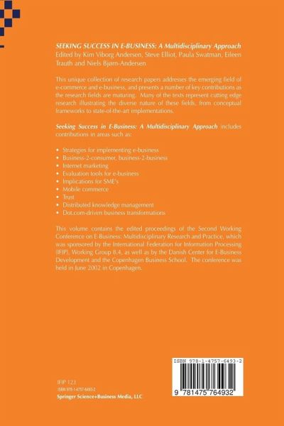 If e-Business is Different, then so is Research in e-Business.- The Internet and an Opportunity to Re-invent the Banking System.- Failing with success.- Models of Trust in Business-to-Consumer Electronic Commerce.- Conceptual frames of reference and their influence on E-Commerce System Development.- An Evaluation of Intelligent Agent based Innovation in the Wholesale Financial Services Industry.- Enhancing Mobile Commerce: Instant Music Purchasing Over the Air.- E-Business and Dot.com Driven Transformation - a Comparison of Australian And Indian Experiences in the Telecom Sector.- A Strategic Comprehensive Framework for Evaluating is Investments.- Supporting CLEAR: A Strategy for Small and Medium Size Enterprise Adoption of e-Business Practices in Atlantic Canada.- Multidisciplinary E-Forensics Methodology Development to Assist in the Investigation of e-Crime.- The Potentialities of Focus Groups in e-Business Research: Theory Validation.- Use of the Web for Destination Marketing by Regional Tourism Organisations in the Asia-Pacific Region.- Internet Marketing Communications: Interactivity and Integration.- E-Business and the Formation of Strategies.- Managing a portfolio of supplier relations in internet-driven electronic market places.- Adoption of E-Commerce in SMEs: Lessons from Stage Models.- E-Government Business Strategies and Services to Citizens.- The Implications of E-Commerce for Software Project Risk: A preliminary investigation.- Framework for Participants' Recognition of Key Success Factors in Electronic Marketplaces.- Integrating E-commerce into the Retail Supply Chain.- Integration of an Internet-Driven Supply Chain for a Medium-Size E-commerce Company.- Consumer Choice, Information Product Quality, and Market Implications.- On-line Retailing: AnInvestigation into the Success Factors.- Governance for E-business Knowledge Management Systems.- The Value of E-procurement Models in B2B Exchanges - An Australian Experience.- E-commerce and Human Resource Management: Theoretical Approaches and Issues for the Banking Industry.- When e-business becomes k-business.....will it be 'a natural act'?.- Designing an Online Self-Assessment Tool Utilizing Confidence Measurement.- Strategizing for Distributed Knowledge Management.- Software Packages.- Understanding e-business competencies in SMEs.- Traditional Australian Media Organisations Adoption of the World Wide Web.- The Nature of Work for Employees in a Virtual Organisation: The Virtual Worker.- Mobile Commerce - The Challenges.