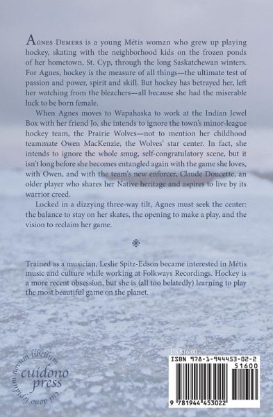 Agnes Demers is a young Métis woman who grew up playing hockey, skating with the neighborhood kids on the frozen ponds of her hometown, St. Cyp, through the long Saskatchewan winters. For Agnes, hockey is the measure of all things—the ultimate test of passion and power, spirit and skill. But hockey has betrayed her, left her watching from the bleachers—all because she had the miserable luck to be born female. When Agnes moves to Wapahaska to work at the Indian Jewel Box with her friend Jo, she intends to ignore the town’s minor-league hockey team, the Prairie Wolves—not to mention her childhood teammate Owen MacKenzie, the Wolves’ star center. In fact, she intends to ignore the whole smug, self-congratulatory scene, but it isn’t long before she becomes entangled again with the game she loves, with Owen, and with the team’s new enforcer, Claude Doucette, an older player who shares her Native heritage and aspires to live by its warrior creed. Locked in a dizzying three-way tilt, Agnes must seek the center: the balance to stay on her skates, the opening to make a play, and the vision to reclaim her game.