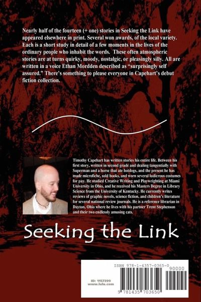Nearly half of the fourteen (+ one) stories in Seeking the Link have appeared elsewhere in print. Several won awards, of the local variety. Each is a short study in detail of a few moments in the lives of the ordinary people who inhabit the words. These