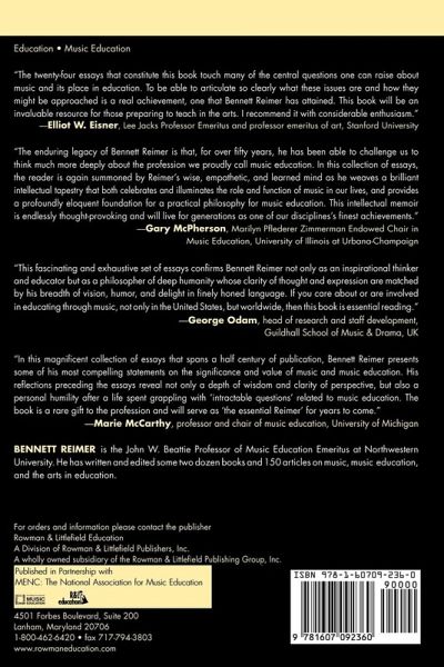 Noted music educator Bennett Reimer has selected 24 of his previously published articles from a variety of professional journals spanning the past 50 years. During that time, he's tackled generating core values for the field of music education; the core in larger societal and educational contexts; what to teach and how to teach it effectively; how we need to educate our teachers; the role of research in our profession; and how to improve our future status.