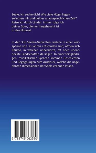 In den 336 Seelen-Gedichten, welche in 4 Bänden in einer Zeitspanne von 36 Jahren entstanden sind, öffnen sich Räume, in welchen unberührte, oft noch unentdeckte Landschaften da liegen. In einer feingliedrigen, musikalischen Sprache kommen Geschichten und Begegnungen zum Ausdruck, welche die ungeahnten Dimensionen der Seele erahnen lassen.