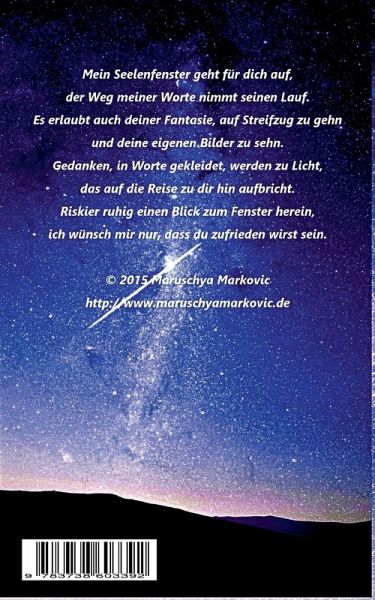 Lyrik heißt, die Welt und die Phänomene des Lebens im Lichte der Dichtung einmal anders zu sehen. Lyrik kann nachdenklich stimmen, aber auch leicht und heiter. Bei den Gedichten in diesem Buch kann sich der Leser vom Klang der Worte mal in diese oder jene Atmosphäre tragen lassen. "Seelenfenster" ist der zweite Lyrikband von Maruschya Markovic. Die Autorin hat diesen Titel gewählt, weil das Buch sowohl Einblicke in ihre Seele gewährt, aber auch durch die Vielzahl der Themen und der Stimmungen dem Leser die Möglichkeit eröffnet, das Leuchten der Worte durch das Fenster seiner eigenen Seele einzulassen.