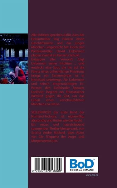 Es beginnt im Nebel - und endet im FeuerDer Fall scheint erledigt. Alle Indizien sprechen dafür, dass der Herumtreiber Stig Hansen einen Geschäftsmann und ein junges Mädchen umgebracht hat. Doch den Polizeiermittler David Lieberman plagen Zweifel an Hansens Schuld. Entgegen aller Vernunft folgt Lieberman seiner Intuition ... und entdeckt eine Spur, die ihn auf die Fährte eines unheimlichen Phantoms bringt: Ein Serienmörder ist in Norrestad unterwegs. Für Lieberman und seinen drogensüchtigen Ex-Partner, den Zielfahnder Spencer Lockhart, beginnt ein dramatischer Wettlauf gegen die Zeit, um das Leben eines verschwundenen Mädchens zu retten.SEELENFROST - eigenwillig, abgründig und finster wie die Nacht. Ein neues, haarsträubend spannendes Thriller-Meisterwerk von Sascha André Michael, dem Autor von Die Frequenz der Angst und Morgenmenschen.Der erste Band der Norrland-Trilogie ...Eine fremdartige Stadt im NebelZwei gequälte SeelenFünf Menschen im Bann einer erbarmungslosen Mordserie.SEELENFROST