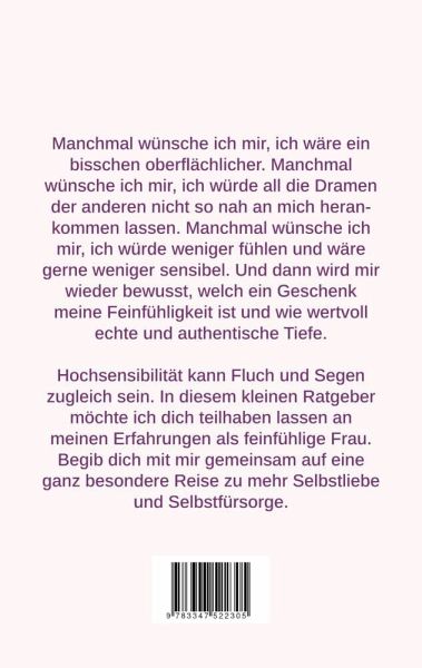 Das Buch ist ein Ratgeber und Mutmachbuch, das schrittweise erklärt, wie sich die Feinfühligkeit als etwas Nützliches dienen kann oder als Geschenk in unserem Leben erweisen kann.