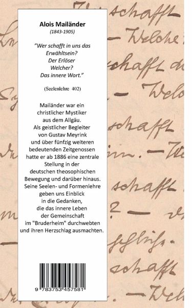 In seiner Seelenlehre beschreibt Mailänder die seelischen Vorgänge in der Mystik in nüchterner Selbstbeobachtung mit poetischer Sprache. Für Mailänders Formenlehre gibt es Vorbilder bei Jakob Böhme. In dessen Emblematik findet man ähnliche Gedankengänge. Die Schriften von Jakob Boehme und Paracelsus als Vorbilder für Mailänder zu bezeichnen, scheint konstruiert zu sein. Aber es ist nachgewiesen, dass die Schriften der Boehme - Schüler John Pordage und Jane Leade im schwäbischen Pietismus hoch geschätzt und auch im Hauskreis von Mailänder vorgelesen und kommentiert wurden.