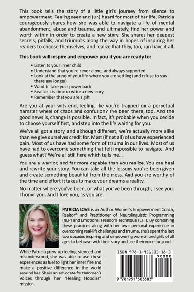 This book tells the story of a little girl's journey from silence to empowerment. Feeling seen and (un) heard for most of her life, Patricia courageously shares how she was able to navigate a life of mental abandonment, abuse and trauma, and ultimately, find her power and worth within in order to create a new story. She shares her deepest secrets, pitfalls, and triumphs along the way in hopes of inspiring her readers to choose themselves, and realize that they, too, can have it all. This book will inspire and empower you if you are ready to: Listen to your inner child Understand that you're never alone, and always supported Look at the areas of your life where you are settling (and refuse to stay there any longer) Want to take your power back Realize it is time to write a new story Remember that you are a gift Are you at your wits end, feeling like you're trapped on a perpetual hamster wheel of chaos and confusion? I've been there, too. And the good news is, change is possible. In fact, it's probable when you decide to choose yourself first, and step into the life waiting for you. We've all got a story, and although different, we're actually more alike than we give ourselves credit for. Most (if not all) of us have experienced pain. Most of us have had some form of trauma in our lives. Most of us have had to overcome something that felt impossible to navigate. And guess what? We're all still here which tells me... You are a warrior, and far more capable than you realize. You can heal and rewrite your story. You can take all the lessons you've been given and create something beautiful from the mess. And you are worthy of the time and effort it takes to make your dreams a reality. No matter where you've been, or what you've been through, I see you. I honor you. And I love you, as you are.