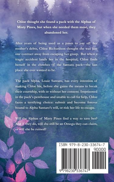 Chloe thought she found a pack with the Alphas of Misty Pines, but when she needed them most, they abandoned her. After years of being used as a pawn to pay off her mother's debts, Chloe Richardson thought she was just one contract away from escaping her grasp. But when a tragic accident lands her in the hospital, Chloe finds herself in the clutches of the Santaro pack-the last place she ever wanted to be. The pack Alpha, Louie Santaro, has every intention of making Chloe his, before she gains the means to break their courtship, with or without her consent. Imprisoned in the pack's penthouse and unable to call for help, Chloe faces a terrifying choice: submit and become forever bound to Alpha Santaro's will, or risk her life to escape. Will the Alphas of Misty Pines find a way to save her? And if they do, will she still be an Omega they can claim, or will she be ruined?