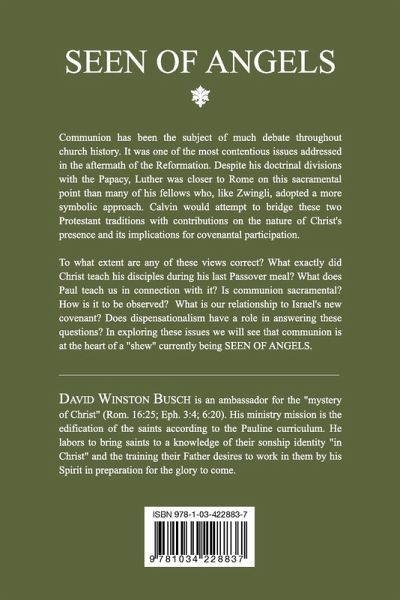 Communion has been the subject of much debate throughout church history. It was one of the most contentious issues addressed in the aftermath of the Reformation. Despite his doctrinal divisions with the Papacy, Luther was closer to Rome on this sacramental point than many of his fellows who, like Zwingli, adopted a more symbolic approach. Calvin would attempt to bridge these two Protestant traditions with contributions on the nature of Christ's presence and its implications for covenantal participation. To what extent are any of these views correct? What exactly did Christ teach his disciples during his last Passover meal? What does Paul teach us in connection with it? Is communion sacramental? How is it to be observed? What is our relationship to Israel's new covenant? Does dispensationalism have a role in answering these questions? In exploring these issues we will see that communion is at the heart of a "shew" currently being SEEN OF ANGELS.