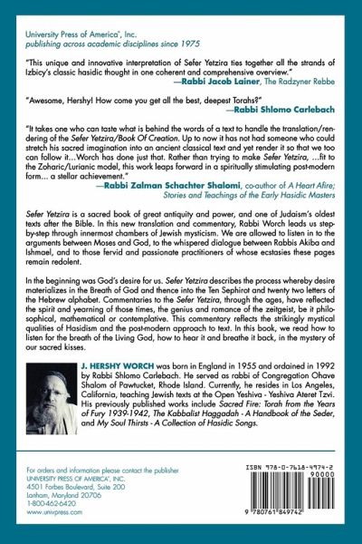 Sefer Yetzira, a sacred book of antiquity and power, is one of Judaism's oldest texts after the Bible. In this new translation and commentary, Rabbi Worch leads us step-by-step to the innermost chambers of Jewish mysticism. This commentary reflects strikingly mystical qualities of Hasidism and the post-modern approach to text.