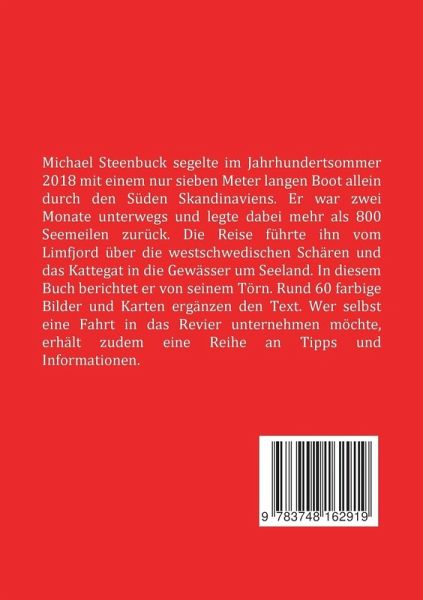 Michael Steenbuck segelte im Jahrhundertsommer 2018 mit einem nur sieben Meter langen Boot allein durch den Süden Skandinaviens. In diesem Buch berichtet er von seiner Reise. Sie führte ihn über 800 Seemeilen vom Limfjord über die west-schwedischen Schären und das Kattegat in die Gewässer um Seeland. Rund 60 farbige Bilder und Karten ergänzen den Text. Wer selbst eine Fahrt in dieses Revier unternehmen möchte, erhält zudem eine Reihe an Tipps und Informationen.
