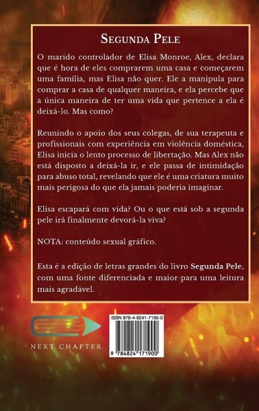 O marido controlador de Elisa Monroe, Alex, declara que é hora de eles comprarem uma casa e começarem uma família, mas Elisa não quer. Ele a manipula para comprar a casa de qualquer maneira, e ela percebe que a única maneira de ter uma vida que pertence a ela é deixá-lo. Mas como? Reunindo o apoio dos seus colegas, de sua terapeuta e profissionais com experiência em violência doméstica, Elisa inicia o lento processo de libertação. Mas Alex não está disposto a deixá-la ir, e ele passa de intimidação para abuso total, revelando que ele é uma criatura muito mais perigosa do que ela jamais poderia imaginar. Elisa escapará com vida? Ou o que está sob a segunda pele irá finalmente devorá-la viva? NOTA: conteúdo sexual gráfico. Esta é a edição de letras grandes do livro Segunda Pele, com uma fonte diferenciada e maior para uma leitura mais agradável.