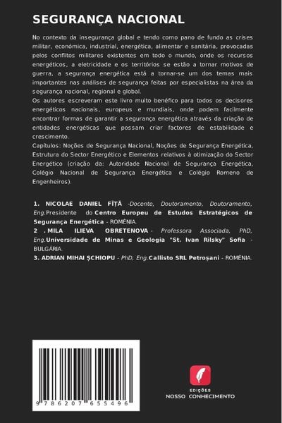 No contexto da insegurança global e tendo como pano de fundo as crises militar, económica, industrial, energética, alimentar e sanitária, provocadas pelos conflitos militares existentes em todo o mundo, onde os recursos energéticos, a eletricidade e os territórios se estão a tornar motivos de guerra, a segurança energética está a tornar-se um dos temas mais importantes nas análises de segurança feitas por especialistas na área da segurança nacional, regional e global.Os autores escreveram este livro muito benéfico para todos os decisores energéticos nacionais, europeus e mundiais, onde podem facilmente encontrar formas de garantir a segurança energética através da criação de entidades energéticas que possam criar factores de estabilidade e crescimento.Capítulos: Noções de Segurança Nacional, Noções de Segurança Energética, Estrutura do Sector Energético e Elementos relativos à otimização do Sector Energético (criação da: Autoridade Nacional de Segurança Energética, Colégio Nacional de Segurança Energética e Colégio Romeno de Engenheiros).