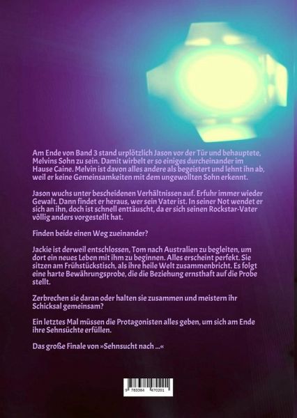 Als Jason vor Melvins Tür auftaucht und behauptet sein Sohn zu sein, wirbelt er einiges durcheinander im Hause Caine. Melvin kann mit diesem neuen Sohn überhaupt nichts anfangen. Jason geht es mit seinem Vater nicht viel anders, hatte er doch einen coolen Rockstar erwartet.Jackie wandert derweil mit Tom nach Australien aus. Nach einer kurzen glücklichen Zeit, wird Tom verhaftet und ein wahrer Alptraum beginnt.In diesem Finale der Familiensaga "Sehnsucht nach ..." müssen die Protagonisten noch einmal alles aufbieten, um sich am Ende ihre Sehnsüchte zu erfüllen und ihr ganz persönliches Happy End zu erreichen.…mehr