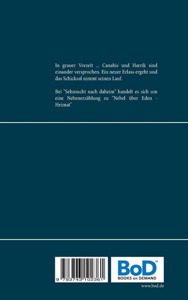 In grauer Vorzeit ... Canahis und Harrik sind einander versprochen. Ein neuer Erlass ergeht und das Schicksal nimmt seinen Lauf.Bei "Sehnsucht nach daheim" handelt es sich um eine Nebenerzählung zu "Nebel über Eden - Heimat"