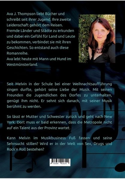 Ava J. Thompson ist Autorin aus Leidenschaft. Fasziniert davon, wie sich Menschen in außergewöhnlichen Lebenssituationen verhalten, treibt sie auch die Protagonisten ihrer Geschichten immer wieder in Extremsituationen, in denen sie sich beweisen müssen. Melvin, der Protagonist des ersten Teils ihrer Romanreihe, sagt einmal in einem Interview: 'Meine Songs sind Gefühle tief da drin. Irgendwann sind sie so stark, dass sie raus müssen. So verwandeln sie sich in Songs.' Genauso verhält es sich bei Ava mit ihren Geschichten. Dieses kleine Beispiel zeigt, dass sich in der fiktiven Romanreihe auch ab und zu ein Fünkchen Realität wiederfindet. Ava erschafft Charaktere mit psychologischer Tiefe. Daher gibt es auch nicht "den Bösewicht", sondern stets eine Geschichte dahinter. Die Figuren haben Ecken und Kanten und auch schon mal spezielle Marotten. Lebensnähe ist ihr so wichtig, dass sie im Falle von Melvins Geschichte auch schon mal gefragt wurde, ob es sich nicht doch um eine wahre Geschichte aus dem Musikbusiness handele. Die Romane aus Avas Feder spielen überwiegend in den USA, die für die Autorin viele Jahre wie eine zweite Heimat waren. Sie reist generell gern und vorzugsweise allein. So besucht sie die Schauplätze ihrer Geschichten, um Land und Leute kennenzulernen und ein Gefühl für sie zu bekommen. Ihre Romanhandlungen finden sich auch im geschichtlichen Kontext wieder, wofür sie tiefgründig recherchiert. Egal, ob es um die politischen Wirren in Eduardo Garcias Heimatland oder um die so genannte "Rattenlinie", auf der hochrangige Nazis nach Argentinien flüchteten oder später um die Geschehnisse des 11. September geht, Ava lässt ihre Figuren in möglichst authentischem geschichtlichem Umfeld agieren. Nicht zuletzt profitiert ihre niemals an Grenzen stoßende Phantasie von ihrem eigenen bewegten Leben, das sie selbst auch immer mal extreme Situation erleben ließ. Tauchen Sie ab in die Welt von Ava J. Thompson und erleben Sie, welche Abgründe die Protagonisten überwinden müssen, bis sich ihre ganz eigene Sehnsucht erfüllt. Ava J. Thompson ist Mitglied im Selfpublisher-Verband.