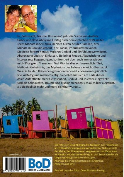 Sehnsucht, Träume, IllusionenIn diesem Buch geht die Reise, die 2009 in Goa, Indien begonnen hatte, weiter nach Sri Lanka, wo Anahita und ihr Partner Deva Abhiyana drei Monate in Kalkudah bei den Tamilen im Nordosten verbrachten. Die Lesenden erleben, wie die beiden Reisenden, die eigentlich weniger reisen als an einem Ort verweilen möchten, 2010 erneut in Goa landen, diesmal schneller eine geeignete Bleibe finden, um sich nach drei Monaten in neue Abenteuer in Sri Lankas Süden zu stürzen. Die Suche nach dem einfachen SEIN geht weiter, fordert heraus, verlangt Geduld und Einfühlungsvermögen, Abgrenzung und sich Einlassen. Wohin alles schlussendlich führt, bleibt ein Geheimnis, das Mysterium des Lebens vielleicht überhaupt. Was die beiden Abenteurer gefunden haben ist ebenso geheimnisvoll wie vielfältig und mehrschichtig. Sicherlich hat sich am Ende dieser Asien-Aufenthalte mehr Gelassenheit, Geduld und Toleranz eingestellt. Und die Sehnsüchte, Träume und Illusionen haben sich auch hier aufgelöst, als die Realität mehr und mehr sichtbar wurde ... Die Fotos von Deva Abhiyana Freitag regen zum Hinschauen an. Er fängt Stimmungen ein, verweilt in der Natur, er sieht das Kleine, das Übersehene, Vergessenes oder Verlorenes im Abseits. Mit der Kamera bringt er den Betrachtenden die Dinge direkt vor die Augen. Anahitas Bilder dokumentieren die Erlebnisse, Personen und Orte.Bearbeitung aller Fotos: Deva Abhiyana Freitag