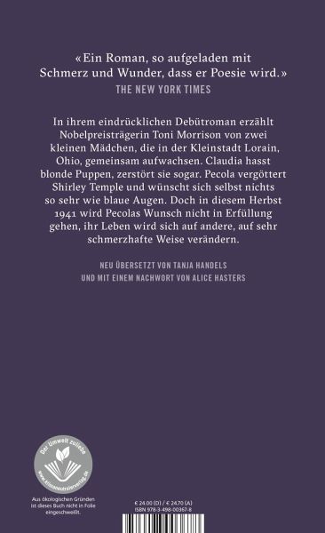 Das Romandebüt der Nobelpreisträgerin Toni Morrison in neuer, zeitgemäßer Übersetzung und mit einem Vorwort von Alice Hasters. Morrison erzählt vom Aufwachsen in einer Welt, die von Ein- und Ausgrenzungen geprägt ist.