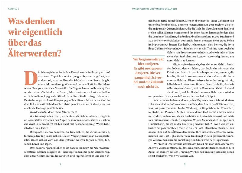 Wissenschaftlich fundiert & verständlich -Impulse aus der Neurologie, Psychologie und Glücksforschung geben dir Werkzeuge an die Hand, um achtsam zu altern. Ganzheitlicher Blick aufs Altern - Ernährung, Fitness, Beziehungen, Gedanken - alles beeinflusst, wie glücklich wir altern. Praktische Übungen & Impulse - Konkrete Tools helfen dir, neue Routinen und ein positives Mindset im Alter zu entwickeln. Für alle, die mehr wollen - Ideal für alle über 40, die nicht nur gesund leben, sondern länger gut leben möchten.