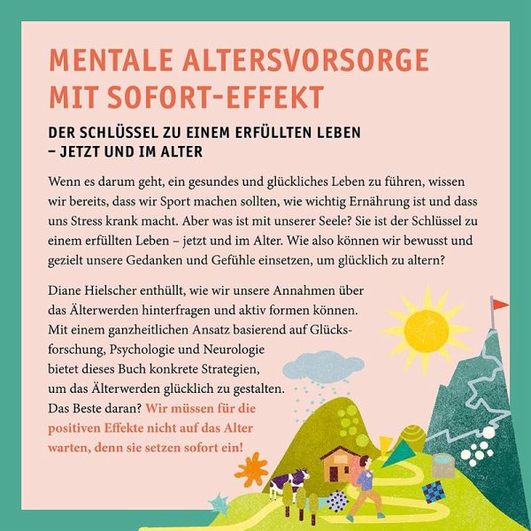 Das Buch kombiniert fundiertes Wissen aus der Neurologie, achtsame Selbstreflexion und einfache Übungen für den Alltag. Kapitel für Kapitel beleuchtet Diane Hielscher Themen wie Resilienz, persönliche Entwicklung, Neurobiologie, Flow-Erleben und Zukunftsvisionen. Du findest Inspirationen für deine Ernährung, mentale Fitness und bewusste Prävention - ein Lebenshilfe-Werkzeugkasten für alle, die aktiv und glücklich älter werden möchten.