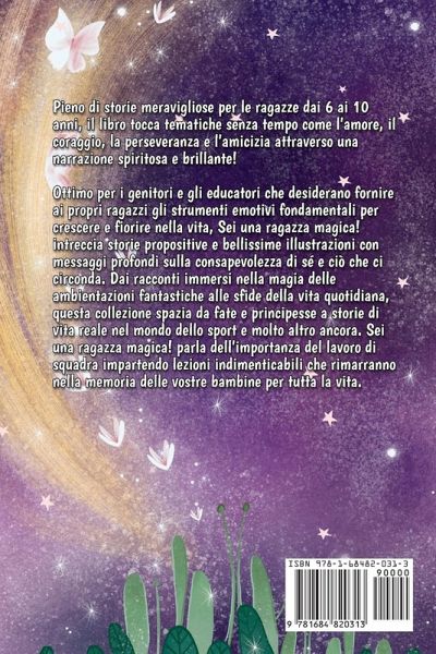 Una serie di racconti che stimoleranno nelle giovani lettrici riflessioni importanti su temi significativi della vita! Pieno di storie meravigliose per le ragazze dai 6 ai 10 anni, il libro tocca tematiche senza tempo come l'amore, il coraggio, la perseveranza e l'amicizia attraverso una narrazione spiritosa e brillante! Ottimo per i genitori e gli educatori che desiderano fornire ai propri ragazzi gli strumenti emotivi fondamentali per crescere e fiorire nella vita, Sei una ragazza magica! intreccia storie propositive e bellissime illustrazioni con messaggi profondi sulla consapevolezza di sé e ciò che ci circonda. Dai racconti immersi nella magia delle ambientazioni fantastiche alle sfide della vita quotidiana, questa collezione spazia da fate e principesse a storie di vita reale nel mondo dello sport e molto altro ancora. Sei una ragazza magica! parla dell'importanza del lavoro di squadra impartendo lezioni indimenticabili che rimarranno nella memoria delle vostre bambine per tutta la vita. Dettagli del libro:Una serie di racconti coinvolgenti che emozioneranno e ispireranno le bambine dai 6 ai 10 anni Promuove temi fondamentali per la crescita come il coraggio, la perseveranza, l'amicizia, la consapevolezza di sé e del mondo che ci circonda Incoraggia lo sviluppo dell'intelligenza emotiva Ideale per numerose attività come la lettura di gruppo o le fiabe della buonanotte, aiuta le ragazze a leggere e imparare più facilmente È un'idea regalo perfetta per compleanni, il Natale, per le vacanze estive e molte atre occasioni speciali Sei una ragazza magica! è il libro perfetto per tutti coloro che desiderano insegnare alle giovani generazioni come superare le avversità, gestire i propri sentimenti, accrescere la consapevolezza di se stessi e del mondo che ci circonda attraverso una scrittura creativa e coinvolgente basata sulla positività. Sei pronto a regalare a tua figlia un'esperienza della quale si ricorderà per tutta la vita? Se la risposta è sì, affrettati a richiedere una copia del libro!