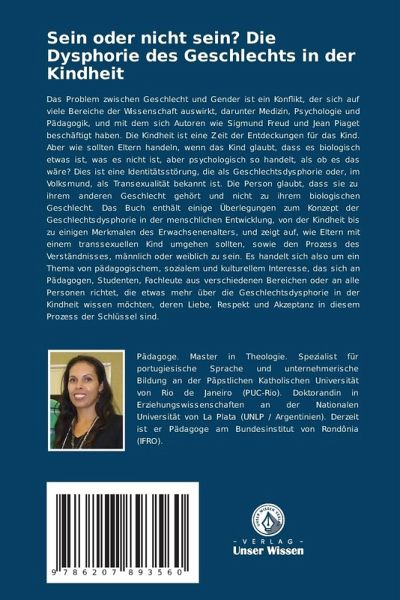 Das Problem zwischen Geschlecht und Gender ist ein Konflikt, der sich auf viele Bereiche der Wissenschaft auswirkt, darunter Medizin, Psychologie und Pädagogik, und mit dem sich Autoren wie Sigmund Freud und Jean Piaget beschäftigt haben. Die Kindheit ist eine Zeit der Entdeckungen für das Kind. Aber wie sollten Eltern handeln, wenn das Kind glaubt, dass es biologisch etwas ist, was es nicht ist, aber psychologisch so handelt, als ob es das wäre? Dies ist eine Identitätsstörung, die als Geschlechtsdysphorie oder, im Volksmund, als Transexualität bekannt ist. Die Person glaubt, dass sie zu ihrem anderen Geschlecht gehört und nicht zu ihrem biologischen Geschlecht. Das Buch enthält einige Überlegungen zum Konzept der Geschlechtsdysphorie in der menschlichen Entwicklung, von der Kindheit bis zu einigen Merkmalen des Erwachsenenalters, und zeigt auf, wie Eltern mit einem transsexuellen Kind umgehen sollten, sowie den Prozess des Verständnisses, männlich oder weiblich zu sein. Es handelt sich also um ein Thema von pädagogischem, sozialem und kulturellem Interesse, das sich an Pädagogen, Studenten, Fachleute aus verschiedenen Bereichen oder an alle Personen richtet, die etwas mehr über die Geschlechtsdysphorie in der Kindheit wissen möchten, deren Liebe, Respekt und Akzeptanz in diesem Prozess der Schlüssel sind.