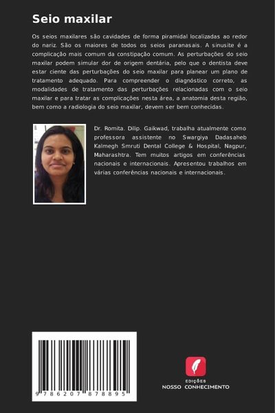 Os seios maxilares são cavidades de forma piramidal localizadas ao redor do nariz. São os maiores de todos os seios paranasais. A sinusite é a complicação mais comum da constipação comum. As perturbações do seio maxilar podem simular dor de origem dentária, pelo que o dentista deve estar ciente das perturbações do seio maxilar para planear um plano de tratamento adequado. Para compreender o diagnóstico correto, as modalidades de tratamento das perturbações relacionadas com o seio maxilar e para tratar as complicações nesta área, a anatomia desta região, bem como a radiologia do seio maxilar, devem ser bem conhecidas.