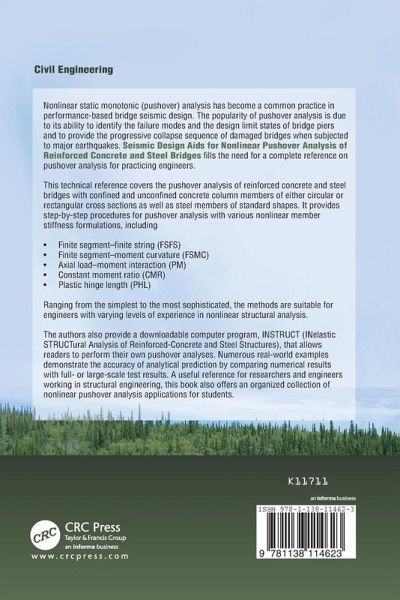 Overview of Seismic Design of Highway Bridges in the United States. Pushover Analysis Applications. Nonlinear Pushover Analysis Procedure. Nonlinear Bending Stiffness Matrix Formulations. Analytical Formulation for Structures. Input Data for INSTRUCT Program. Numerical Examples. Appendix A: Stiffness Matrix Formulation for Bilinear PM Method. Appendix B: Stiffness Matrix Formulation for Finite Segment. Appendix C: Unbalanced Forces of a Finite Segment. Appendix D: Nonlinear Incremental Solution Algorithms. Appendix E: Plastic Curvature Capacities and Neutral Axis Depth in Columns. Appendix F: Elastic and Inelastic Time History Analysis. Appendix G: Elastic and Inelastic Response Spectra. Appendix H: Response Spectrum Analysis of Multiple-dof System. Appendix I: Polynomial Curve Fitting. Appendix J: Plate Element Stiffness Matrix. References. Index.