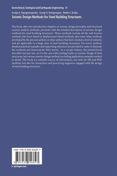 The book, after two introductory chapters on seismic design principles and structural seismic analysis methods, proceeds with the detailed description of seismic design methods for steel building structures. These methods include all the well-known methods, like force-based or displacement-based methods, plus some other methods developed by the present authors or other authors that have reached a level of maturity and are applicable to a large class of steel building structures. For every method, detailed practical examples and supporting references are provided in order to illustrate the methods and demonstrate their merits. As a unique feature, the present book describes not just one, as it is the case with existing books on seismic design of steel structures, but various seismic design methods including application examples worked in detail. The book is a valuable source of information, not only for MS and PhD students, but also for researchers and practicing engineers engaged with the design of steel building structures.