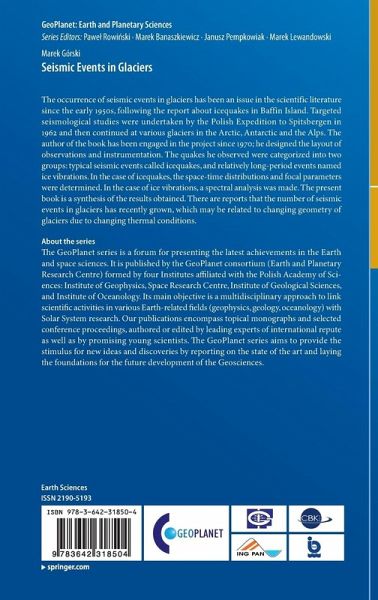 The occurrence of seismic events in glaciers has been an issue in the scientific literature since the early 1950s, following the report about icequakes in Baffin Island. Targeted seismological studies were undertaken by the Polish Expedition to Spitsbergen in 1962 and then continued at various glaciers in the Arctic, Antarctic and the Alps. The author of the book has been engaged in the project since 1970; he designed the layout of observations and instrumentation. The quakes he observed were categorized into two groups: typical seismic events called icequakes, and relatively long-period events named ice vibrations. In the case of icequakes, the space-time distributions and focal parameters were determined. In the case of ice vibrations, a spectral analysis was made. The present book is a synthesis of the results obtained. There are reports that the number of seismic events in glaciers has recently grown, which may be related to changing geometry of glaciers due to changing thermal conditions.
