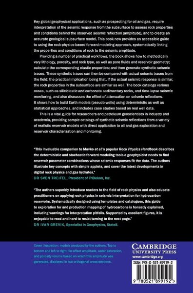 Preface Acknowledgements Part I. The Basics: 1. Forward modeling of seismic reflections for rock characterization 2. Rock physics models and transforms 3. Rock physics diagnostics Part II. Synthetic Seismic Amplitude: 4. Modeling at an interface: quick-look approach 5. Pseudo-wells: principles and examples 6. Pseudo-wells: statistics-based generation Part III. From Well Data and Geology to Earth Models and Reflections: 7. Clastic sequences: diagnostics and Vs prediction 8. Log shapes at the well scale and seismic reflections in clastic sequences 9. Synthetic modeling in carbonates 10. Time lapse (4D) reservoir monitoring Part IV. Frontier Exploration: 11. Rock physics workflow in oil and gas exploration 12. DHI validation and prospect risking Part V. Advanced Rock Physics: Diagenetic Trends, Self-Similarity, Permeability, Poisson's Ratio in Gas Sand, Seismic Wave Attenuation, Gas Hydrates: 13. Rock physics case studies 14. Poisson's ratio and seismic reflections 15. Seismic wave attenuation 16. Gas hydrates Part VI. Rock Physics Operations Directly Applied to Seismic Amplitude and Impedance: 17. Fluid substitution on seismic amplitude 18. Rock physics and seismically derived impedance Part VII. Evolving Methods: 19. Computational rock physics Appendix A. Direct hydrocarbon indicator checklist References Index.