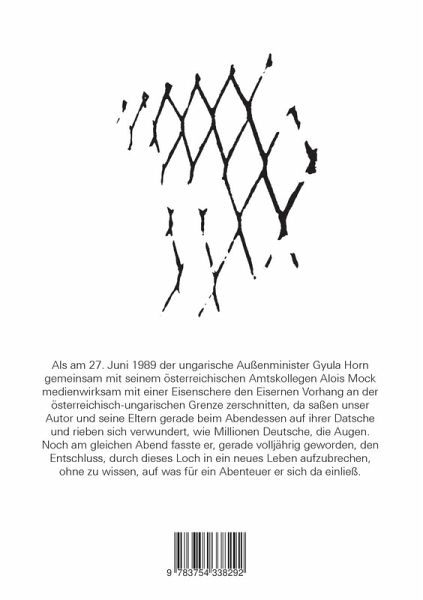 Als am 27. Juni 1989 der ungarische Außenminister Gyula Horn gemeinsam mit seinem österreichischen Amtskollegen Alois Mock medienwirksam mit einer Eisenschere den Eisernen Vorhang an der österreichisch - ungarischen Grenze zerschnitten, da saßen unser Autor und seine Eltern gerade beim Abendessen auf ihrer Datsche und rieben sich verwundert, wie Millionen Deutsche, die Augen. Noch am gleichen Abend fasste er, gerade volljährig geworden, die Entscheidung, durch dieses Loch in ein neues Leben aufzubrechen ohne zu wissen, auf was für ein Abenteuer er sich einlässt.