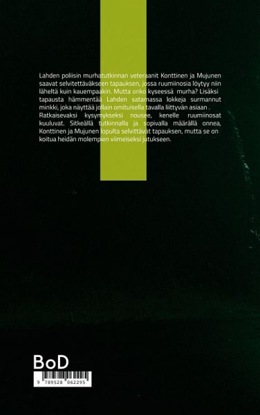 Lahden poliisin murhatutkinnan veteraanit Konttinen ja Mujunen saavat selvitettäväkseen makaaberin tapauksen, jossa ruumiinosia löytyy niin läheltä kuin kauempaa. Mutta onko kyseessä edes murha? Jos on niin onko kyse yhdestä vaiko useammasta uhrista? Lisäksi Konttista ja Mujusta hämmentää Lahden satamassa lokkeja surmannut minkki, joka näyttää jollain omituisella tavalla liittyvän asiaan. Epäiltyjä tekijöitä on useita, mutta ilman ruumiin tunnistamista on juttua hankala selvittää. Ratkaisevaksi nouseekin, kenelle tai keille ruumiinosat kuuluvat. Sitkeällä tutkinnalla ja sopivalla määrällä onnea, Konttinen ja Mujunen lopulta selvittävät tapauksen, mutta se on lähellä koitua heidän molempien viimeiseksi jutukseen.
