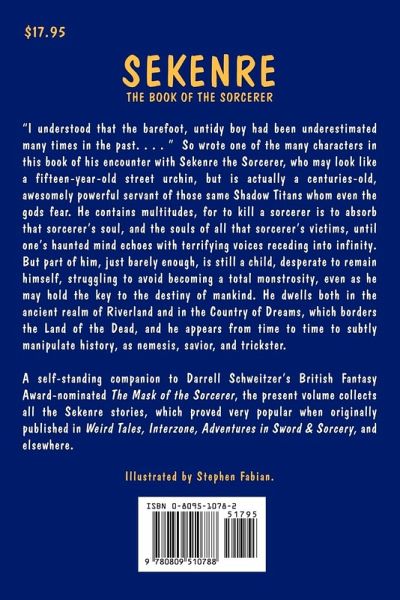 A self-standing companion to Darrell Schweitzer's British Fantasy Award-nominated The Mask of the Sorcerer, the present volume collects all the Sekenre stories, which proved very popular when originally published in Weird Tales, Interzone, Adventures in Sword & Sorcery, and elsewhere.