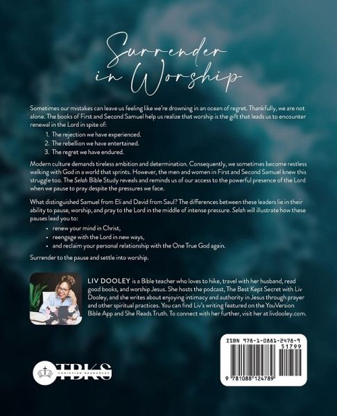 Surrender to the Pause and Recognize the Renewing Power of Worship Sometimes our mistakes can leave us feeling like we're drowning in an ocean of regret. Thankfully, we are not alone. The books of First and Second Samuel help us realize that worship is the gift that leads us to encounter renewal in the Lord in spite of: The rejection we have experienced. The rebellion we have entertained. The regret we have endured. Modern culture demands tireless ambition and determination. Consequently, we sometimes become restless walking with God in a world that sprints. However, the men and women in First and Second Samuel knew this struggle too. The Selah Bible Study reveals and reminds us of our access to the powerful presence of the Lord when we pause to pray despite the pressures we face. What distinguished Samuel from Eli and David from Saul? The differences between these leaders lie in their ability to pause, worship, and pray to the Lord in the middle of intense pressure. Selah will illustrate how these pauses lead you to: renew your mind in Christ, reengage with the Lord in new ways, and reclaim your personal relationship with the One True God again. Features: Personal study content to be completed between six group sessions. Individual access to each session's teaching videos from Liv herself accessible through a QR code. Guided prayer prompts for each of the thirty lessons. Discussion questions and reflection exercises for after the study. Benefits: Grow in knowledge about the history, context, and meaning of 1 and 2 Samuel. Meditate on Scripture and strengthen your personal prayer life. Build your godly leadership skills on integrity through biblical examples. Recognize that nothing can separate you from the love of Christ Jesus.