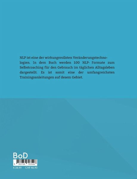 NLP ist eine der wirkungsvollsten Veränderungstechnologien. In dem Buch werden 100 NLP-Formate zum Selbstcoaching für den Gebrauch im täglichen Alltagsleben dargestellt. Es ist somit eine der umfangreichsten Trainingsanleitungen auf desem Gebiet.