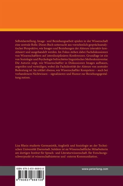 Selbstdarstellung, Image- und Beziehungsarbeit spielen in der Wissenschaft eine zentrale Rolle. Dieses Buch untersucht aus vornehmlich gesprächsanalytischer Perspektive, wie Images und Beziehungen der Akteure interaktiv konstituiert und ausgehandelt werden. Im Fokus stehen dabei Fachdiskussionen von Wissenschaftlern auf interdisziplinären Konferenzen. Grundlage ist ein von Soziologie und Psychologie befruchtetes linguistisches Methodeninventar. Die Autorin zeigt, wie Wissenschaftler in Diskussionen Images aufbauen, angreifen und verteidigen, wobei die Fachidentität der Akteure von zentraler Bedeutung ist. Sie erklärt ebenso, wie Wissenschaftler Kompetenz - auch bei vorhandenem Nichtwissen - signalisieren und Humor zur Beziehungsgestaltung nutzen.
