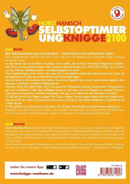 Die Selbstoptimierung vorantreiben - optimistisch und authentisch leben.Das vorliegende Buch lässt sich 'einfach so' lesen oder kann als Werkzeug zum ernsthaften Selbst-Coaching verwendet werden. Im Text werden Sie auf die fiktive Hauptfigur Winni treffen, die bei dieser Gelegenheit vorstellen darf: Winni, ein freundliches Wesen, das manchmal beharrlich sein kann. Winni trifft auf Sigi, den er schon von den Themen Selbstbewusstsein und Selbstwertgefühl her kennt.Winni begleitet Sigi und die Leserin, den Leser, durch verschiedene Kapitel der Selbstoptimierung, wobei die Schwerpunkte auf…mehr