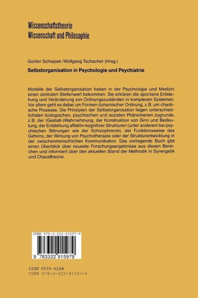 Methoden und Modelle psychischer Grundfunktionen.- Eine methodenorientierte Einfuhrung in die synergetische Psychologie.- Struktur und Bedeutung in kognitiven Systemen.- Attraktoren bei kognitiven und sozialen Prozessen. Kritische Analyse eines Mode-Konzepts.- Wenn etwas ins Auge springt... Signalentdeckung synergetisch gesehen.- Die Anwendung der Synergetik bei der Erkennung von Emotionen im Gesichtsausdruck.- Selbstorganisation in konnektionistischen und hybriden Modellen von Wahrnehmung und Handeln.- Neurowissenschaften und Psychiatrie.- Die nichtlineare Dynamik des menschlichen Gehirns. Methoden und Anwendungsmöglichkeiten.- Die dimensionale Komplexität des EEG in psychotischen und remittierten Zuständen.- Schizophrenie als Korrespondenzproblem plastischer neuronaler Netze.- Sind schizophrene Psychosen dissipative Strukturen? Die Hypothese der Affektlogik.- Soziale Interaktion, Psychotherapie und Management.- Veränderungsprozesse in Paarbeziehungen Eine empirische Studie aus der Sicht der Selbstorganisationstheorie.- "Denkwerkzeuge" für das Nachzeichnen langfristiger Veränderungsprozesse in Psychoanalysen.- Modelle der Chaossteuerung am Beispiel nichtlinearer Systemdynamik in Kräftepotentialen.- Zwischen Ich und Wir. Kleingruppenbildung als selbstorganisierter Prozeß. (Und warum ihn gerade Gruppen untersuchen sollten).- Selbstorganisationskonzepte in der Untemehmensführung.- Ordnungsstrukturen im Wissenschaftsbetrieb. Untersuchungen und Überlegungen zum Lotka'sehen Gesetz der Publikationshäufigkeiten am Beispiel der Psychotherapie.- Sachwortverzeichnis.- Anschriften der Autoren.