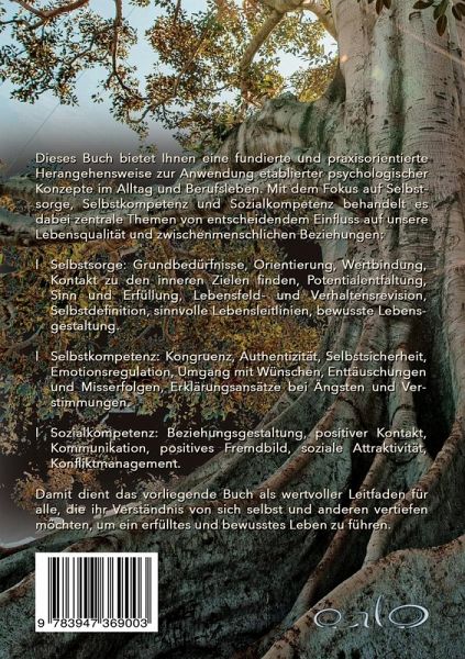 Dieses Buch präsentiert eine fundierte und praxisorientierte Herangehensweise zur Anwendung etablierter psychologischer Konzepte im Alltag und Berufsleben. Mit dem Fokus auf Selbstsorge, Selbstkompetenz und Sozialkompetenz behandelt es dabei zentrale Themen von entscheidendem Einfluss auf unsere Lebensqualität und zwischenmenschlichen Beziehungen: Selbstsorge: Grundbedürfnisse, Orientierung, Wertbindung, Kontakt zu den inneren Zielen finden, Potentialentfaltung, Sinn und Erfüllung, Lebensfeld- und Verhaltensrevision, Selbstdefinition, sinnvolle Lebensleitlinien, bewusste Lebensgestaltung. Selbstkompetenz: Kongruenz, Authentizität, Selbstsicherheit, Emotionsregulation, Umgang mit Wünschen, Enttäuschungen und Misserfolgen, Erklärungsansätze bei Ängsten und Verstimmungen. Sozialkompetenz: Beziehungsgestaltung, positiver Kontakt, Kommunikation, positives Fremdbild, soziale Attraktivität, Konfliktmanagement. Damit dient das vorliegende Buch als wertvoller Leitfaden für alle, die ihr Verständnis von sich selbst und anderen vertiefen möchten, um ein erfülltes und bewusstes Leben zu führen.