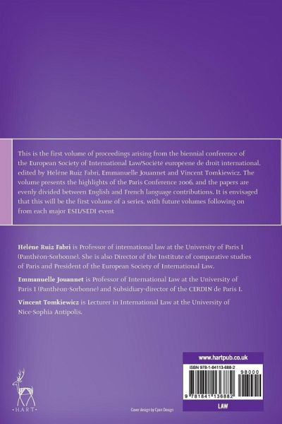 This is the first volume of proceedings arising from the biennial conference of the European Society of International Law/Societe europeene de droit international, edited by Emmanuelle Jouannet, Hélène Ruiz Fabri and Vincent Tomkiewicz. The volume presents the highlights of the Paris Conference 2006, and the papers are evenly divided between English and French language contributions. It is envisaged that this will be the first volume of a series, with future volumes following on from each major ESIL/SEDI event.