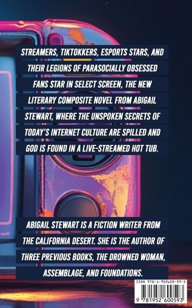 Streamers, TikTokkers, eSports stars, and their legions of parasocially engaged fans star in Select Screen, the new novel from Abigail Stewart spilling the unspoken secrets of today's internet culture.