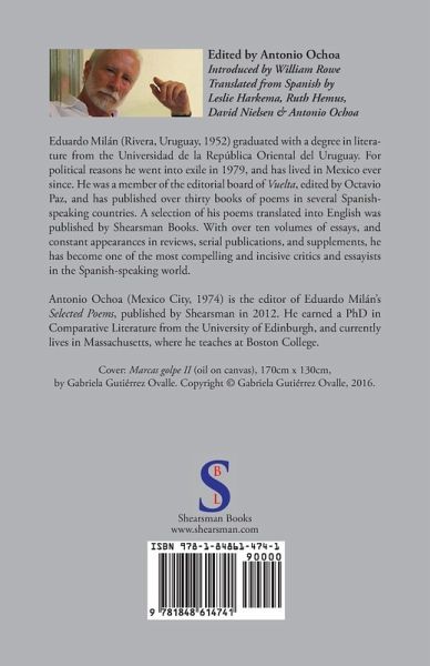 Eduardo Milán (Rivera, Uruguay, 1952) graduated with a degree in literature from the Universidad de la República Oriental del Uruguay. For political reasons he went into exile in 1979, and has lived in Mexico ever since. He was a member of the editorial board of Vuelta, edited by Octavio Paz, and has published over thirty books of poems in several Spanishspeaking countries. A selection of his poems translated into English was published by Shearsman Books. With over ten volumes of essays, and constant appearances in reviews, serial publications, and supplements, he has become one of the most compelling and incisive critics and essayists in the Spanish-speaking world.
