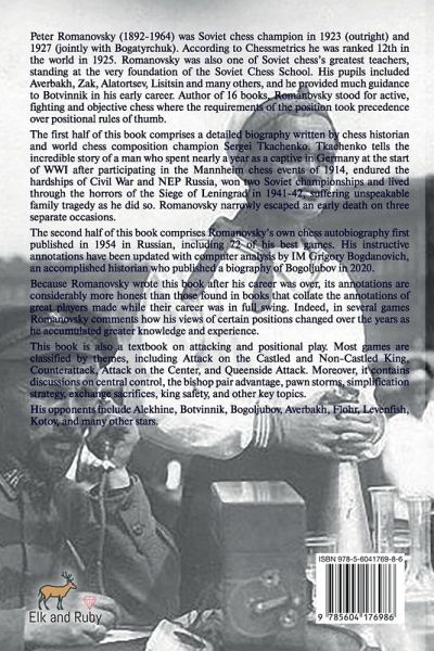 Peter Romanovsky (1892-1964) was Soviet chess champion in 1923 (outright) and 1927 (jointly with Bogatyrchuk). According to Chessmetrics he was ranked 12th in the world in 1925. Romanovsky was also one of Soviet chess's greatest teachers, standing at the very foundation of the Soviet Chess School. His pupils included Averbakh, Zak, Alatortsev, Lisitsin and many others, and he provided much guidance to Botvinnik in his early career. Author of 16 books, Romanovsky stood for active, fighting and objective chess where the requirements of the position took precedence over positional rules of thumb. The first half of this book comprises a detailed biography written by chess historian and world chess composition champion Sergei Tkachenko. Tkachenko tells the incredible story of a man who spent nearly a year as a captive in Germany at the start of WWI after participating in the Mannheim chess events of 1914, endured the hardships of Civil War and NEP Russia, won two Soviet championships and lived through the horrors of the Siege of Leningrad in 1941-42, suffering unspeakable family tragedy as he did so. Romanovsky narrowly escaped an early death on three separate occasions. The second half of this book comprises Romanovsky's own chess autobiography first published in 1954 in Russian, including 72 of his best games. His instructive annotations have been updated with computer analysis by IM Grigory Bogdanovich, an accomplished historian who published a biography of Bogoljubov in 2020. Because Romanovsky wrote this book after his career was over, its annotations are considerably more honest than those found in books that collate the annotations of great players made while their career was in full swing. Indeed, in several games Romanovsky comments how his views of certain positions changed over the years as he accumulated greater knowledge and experience. This book is also a textbook on attacking and positional play. Most games are classified by themes, including Attack on the Castled and Non-Castled King, Counterattack, Attack on the Center, and Queenside Attack. Moreover, it contains discussions on central control, the bishop pair advantage, pawn storms, simplification strategy, exchange sacrifices, king safety, and other key topics. His opponents include Alekhine, Botvinnik, Bogoljubov, Averbakh, Flohr, Levenfish, Kotov, and many other stars. Check out the publisher's website for special deals on this and other books!