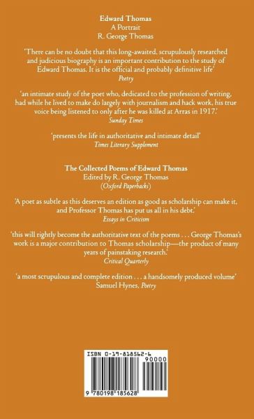 Edward Thomas, professional author and critic, was thirty-nine when he was killed in the Arras offensive on Easter Day, 1917. Six months later his first collection of poems was published and his literary reputation secured. These Selected Letters present a uniquely vivid portrait of Thomas's life, from his time as an undergraduate at Oxford through to his final days at the Front. Chosen from more than 2,000 extant letters from Thomas to his family and literary friends - including Robert Frost, Walter de la Mare, and Eleanor Farjeon - the selection traces his struggle to establish himself as a writer, his long and successful fight against depression, and, amid the strain of a marriage which sometimes brought much agony, the strength of his love for his wife Helen. The letters, which formed a key source for R George Thomas's highly praised biography of a poet, help substantiate the editor's belief that despite Thomas's immense prose output and the late flowering of his verse in 1914-1916, it was nevertheless the name and nature of poetry that was Edward Thomas's dominant lifelong concern.